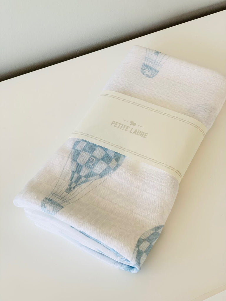 Petite Laure Dusty Blue Hot Air Balloons Bamboo Swaddle